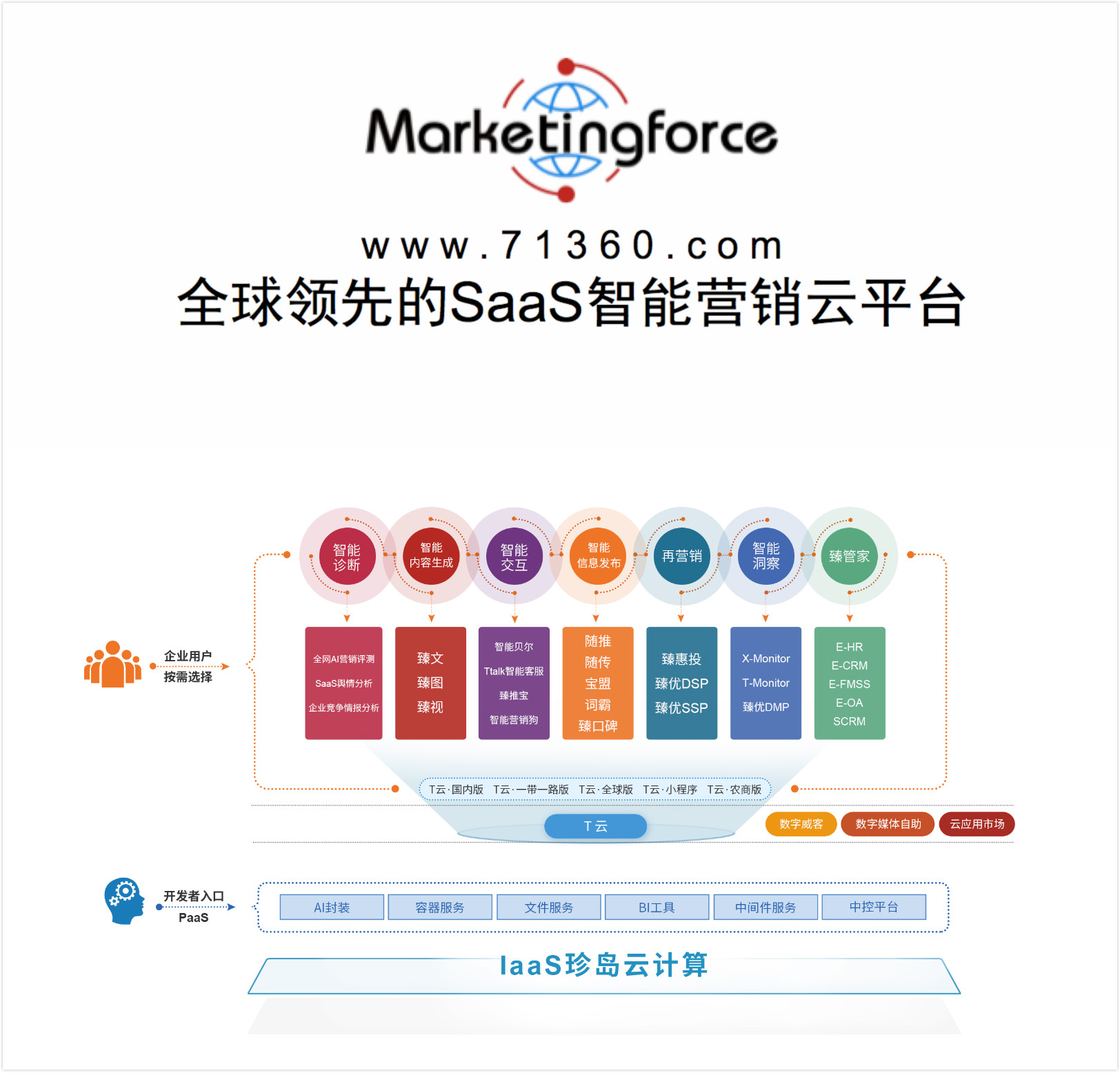 在珍島會客廳,于勇區(qū)長詳細(xì)了解企業(yè)業(yè)務(wù)發(fā)展情況,趙旭隆介紹:“珍島目前的核心商業(yè)定位是打造全球領(lǐng)先的Marketingforce平臺,為全球中小微企業(yè)進(jìn)行營銷力賦能。T云系列產(chǎn)品是Marketingforce在企業(yè)服務(wù)市場終端卓有成效的應(yīng)用工具,其意義在于改變傳統(tǒng)營銷市場服務(wù)格局,依托云計算、數(shù)據(jù)中臺核心技術(shù)我們可以輕松幫助企業(yè)將營銷服務(wù)推進(jìn)至平臺化、軟件化、智能化、生態(tài)化?!?/span>