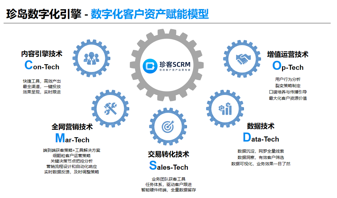 企業(yè)數(shù)字化運(yùn)營(yíng)賦能的前提是企業(yè)痛點(diǎn)被高效突現(xiàn)。在互聯(lián)網(wǎng)Social環(huán)境下,所有企業(yè)都希望快速加強(qiáng)商業(yè)運(yùn)營(yíng)環(huán)節(jié)對(duì)接互聯(lián)網(wǎng)的能力,獲客能力的提升,帶來(lái)的是企業(yè)客戶數(shù)字化資產(chǎn)運(yùn)營(yíng)能力的深度訴求,但企業(yè)往往缺乏有效的工具。珍島推出珍客SCRM - “CMSDO”客戶資產(chǎn)運(yùn)營(yíng)模型,為企業(yè)解決如上問(wèn)題提供完善的技術(shù)服務(wù)支撐。