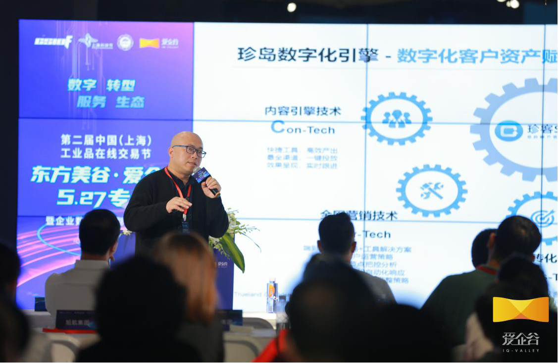 5月27日,“數(shù)字 轉(zhuǎn)型 服務(wù) 生態(tài)”第二屆中國(guó)(上海)工業(yè)品在線交易節(jié),東方美谷·愛企谷527專場(chǎng)暨企業(yè)數(shù)字化轉(zhuǎn)型高峰論壇活動(dòng)在愛企谷園區(qū)內(nèi)舉行。珍島集團(tuán)副總裁張蓬應(yīng)邀參會(huì),并發(fā)表《珍島智能營(yíng)銷云 企業(yè)數(shù)字化運(yùn)營(yíng)增值賦能引擎》專題演講。