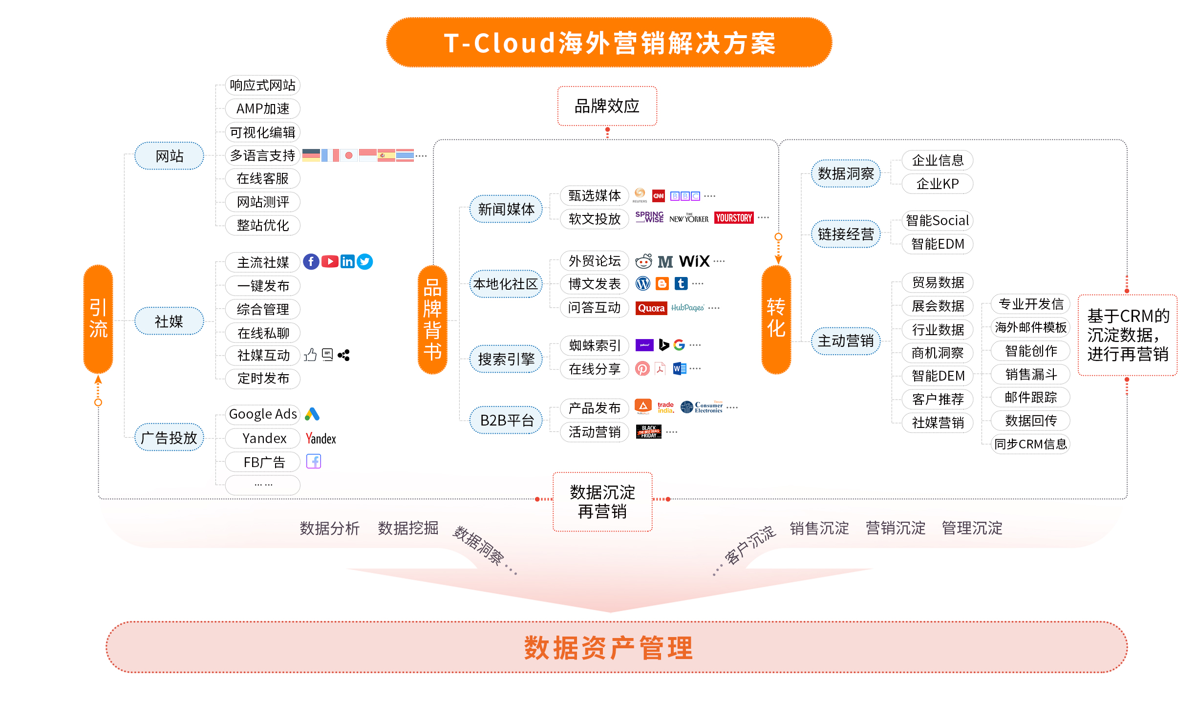 韓亞成繼續(xù)介紹到,為了更好的開拓海外市場,珍島T云外貿(mào)版應(yīng)運(yùn)而生,讓海外營銷變簡單! 面向一帶一路差異化外貿(mào)區(qū)域市場,T云(外貿(mào)版)通過AI-SaaS核心技術(shù)平臺架構(gòu),基于機(jī)器學(xué)習(xí)、智能算法、語義分析等核心技術(shù),將完整的海外數(shù)字營銷環(huán)境進(jìn)行工具化、場景化、流程化整合,實(shí)現(xiàn)海外營銷力(Marketingforce)綜合賦能,實(shí)現(xiàn)企業(yè)數(shù)字營銷前、數(shù)字營銷中、數(shù)字營銷后的全程智能化節(jié)點(diǎn)管控。通過跨平臺智能搜索聯(lián)動優(yōu)化算法、交叉式社媒智能數(shù)據(jù)抓取整合及運(yùn)營數(shù)據(jù)實(shí)時透視引擎等核心技術(shù),幫助外貿(mào)企業(yè)實(shí)現(xiàn)主流媒介資源深度覆蓋,并對各媒介資源進(jìn)行有效的“區(qū)域本地化權(quán)重標(biāo)簽”設(shè)定,完成出口型企業(yè)數(shù)字營銷的多渠道海外社媒賬號管理、實(shí)時數(shù)據(jù)透視與智能報表管理等。