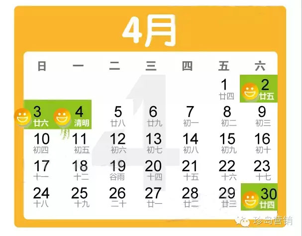 清明節(jié):4月4日放假,與周末連休