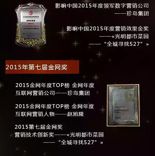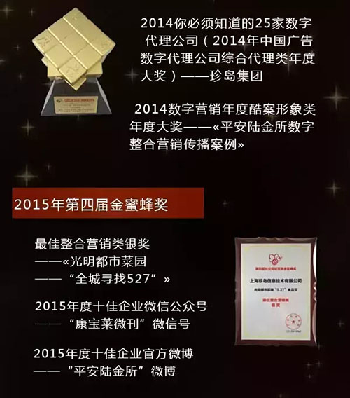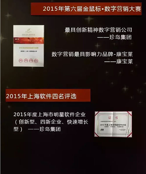 查看詳情2015年作為珍島集團(tuán)重新制定中長期戰(zhàn)略規(guī)劃的發(fā)展元年,在新定位發(fā)展模式下得到的行業(yè)認(rèn)可對(duì)于創(chuàng)新中求發(fā)展的珍島來說意義非凡。今天讓我們來盤點(diǎn)一下2015年我們的獎(jiǎng)項(xiàng)成績單,為2015喝彩,為2016加油!