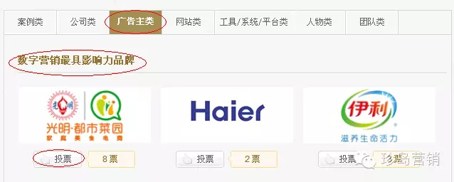 鼠標(biāo)移至廣告主類?找到數(shù)字營銷具影響力品牌點擊?投票