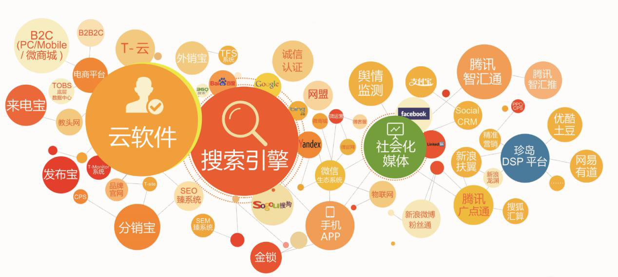 珍島主營業(yè)務(wù)分為三大類:SaaS(T云等)、大數(shù)據(jù)精準(zhǔn)營銷(DSP、71360等)、整案(社媒、搜索、輿情、效果廣告等)。通過將所有資源進(jìn)行深度整合,珍島在業(yè)內(nèi)首先提出“數(shù)字生態(tài)服務(wù)平臺”的全新理念,結(jié)合云計(jì)算、大數(shù)據(jù)、人工智能等先進(jìn)技術(shù),打通國內(nèi)主流媒體及第三方平臺的數(shù)據(jù),并依托珍島集團(tuán)十多年來服務(wù)數(shù)萬家企業(yè)的行業(yè)數(shù)據(jù)沉淀,旨在為企業(yè)提供一站式、自動化的數(shù)字營銷解決方案,開啟智能營銷的新征程。