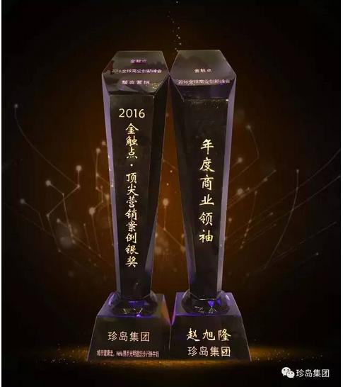 查看詳情12月8日,2016金觸點(diǎn)全球商業(yè)創(chuàng)新峰會(huì)暨金觸點(diǎn)全球商業(yè)創(chuàng)新大獎(jiǎng)?lì)C獎(jiǎng)盛典于北京·康萊德酒店圓滿落幕。珍島集團(tuán)憑借創(chuàng)新技術(shù)優(yōu)勢(shì)及行業(yè)重大成就貢獻(xiàn)一連斬獲雙項(xiàng)大獎(jiǎng):集團(tuán)創(chuàng)始人·總裁趙旭隆先生獲評(píng)“年度商業(yè)領(lǐng)袖”、 選送案例“城市健康走,HeHa攜手光明邀您步行換牛奶”榮獲“2016金觸點(diǎn)·頂尖營(yíng)銷案例”銀獎(jiǎng)。