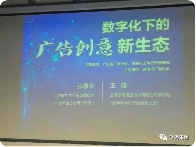 4月27日上午,珍島集團(tuán)副總裁王博與《中國(guó)廣告》雜志社社長(zhǎng)張惠辛先生應(yīng)珠海廣告協(xié)會(huì)的邀請(qǐng),分別就數(shù)字化下的廣告創(chuàng)意新生態(tài)分別進(jìn)行了主題分享。來(lái)自粵港澳地區(qū)的多個(gè)廣告協(xié)會(huì),廣告公司,以及媒體和大學(xué)生參加了此次研討會(huì)。